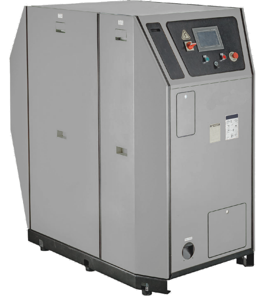 呼吸空气高压压缩机 IDE G900S 以 G 系列活塞式压缩机为主机,具备四级或五级压缩结构,三相电机置于主机下方形成立式布局,外罩壳包裹主机起到导风散热及物理保护作用;配置的 PLC 控制器集成一键启停、保养提示、液晶状态显示、运行时间计时、故障报警显示等功能,可智能化管理设备运行,同时具备自动排污功能,定时排出分离筒内油污以维持系统清洁;机身配备过滤筒,可有效过滤气体中的水分、油污颗粒等杂质,确保输出空气符合呼吸标准,整体结构紧凑且功能集成度高,兼顾操作便捷性与气体净化可靠性。